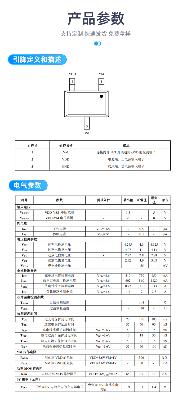 *各保护延迟时间由内部电容设置(不需外接电容)