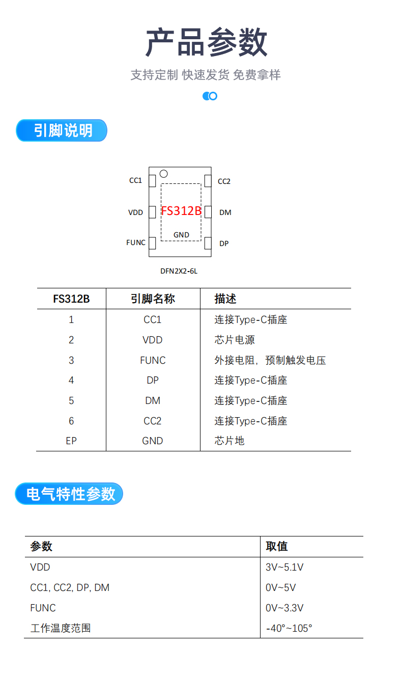 USB Type-C快充协议智能触发芯片 FS312B 支持PD、QC协议